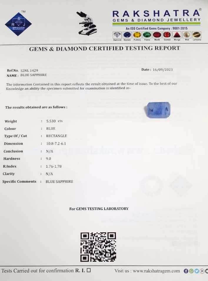| SPECIFIC COMMENTS: | BLUE SAPPHIRE |