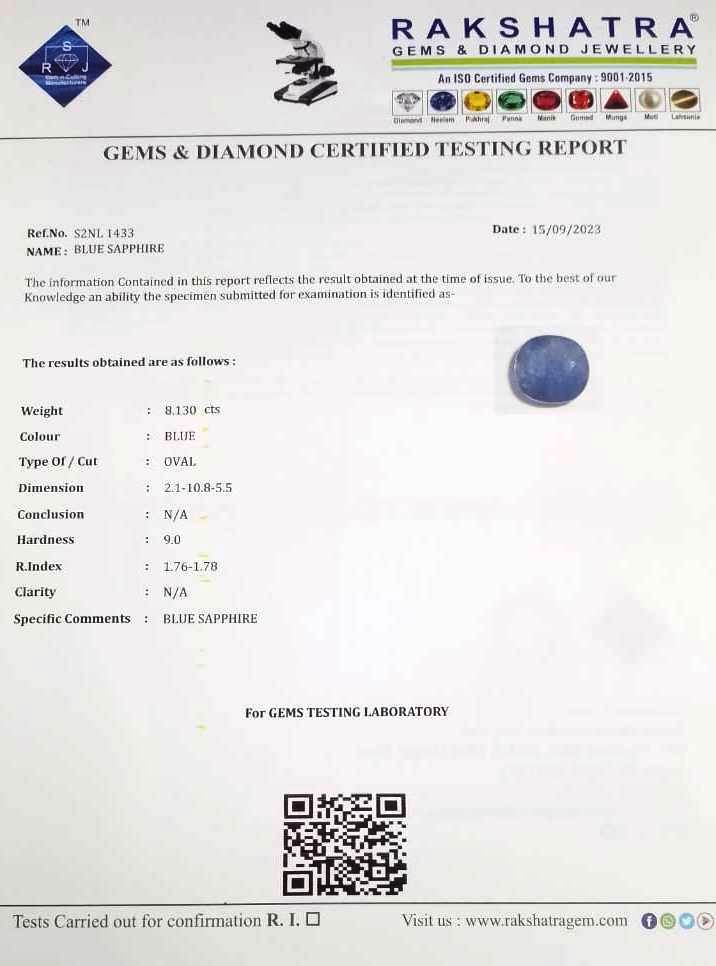 | SPECIFIC COMMENTS: | BLUE SAPPHIRE |