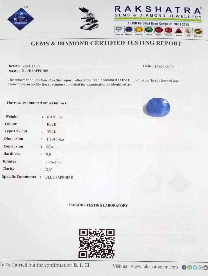 | SPECIFIC COMMENTS: | BLUE SAPPHIRE |