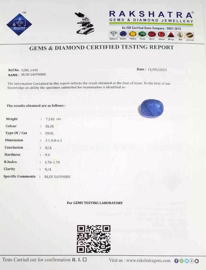 | SPECIFIC COMMENTS: | BLUE SAPPHIRE |