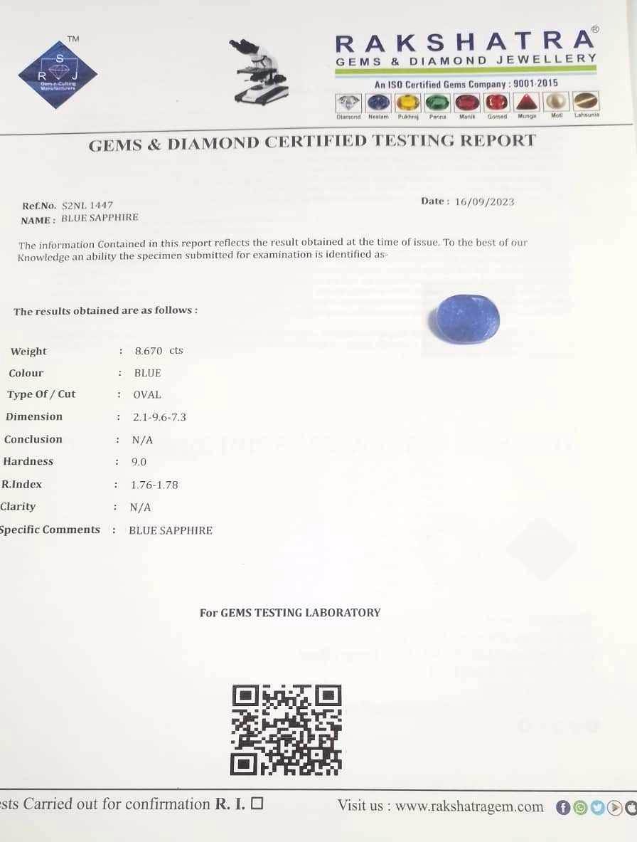 | SPECIFIC COMMENTS: | BLUE SAPPHIRE |