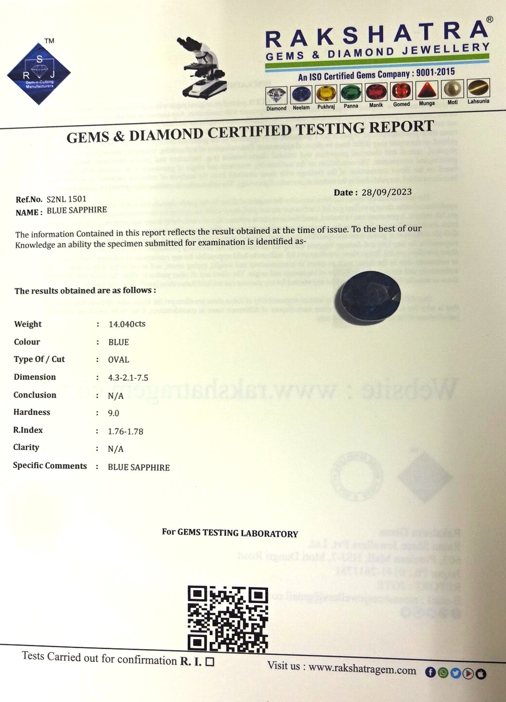 | SPECIFIC COMMENTS: | BLUE SAPPHIRE |