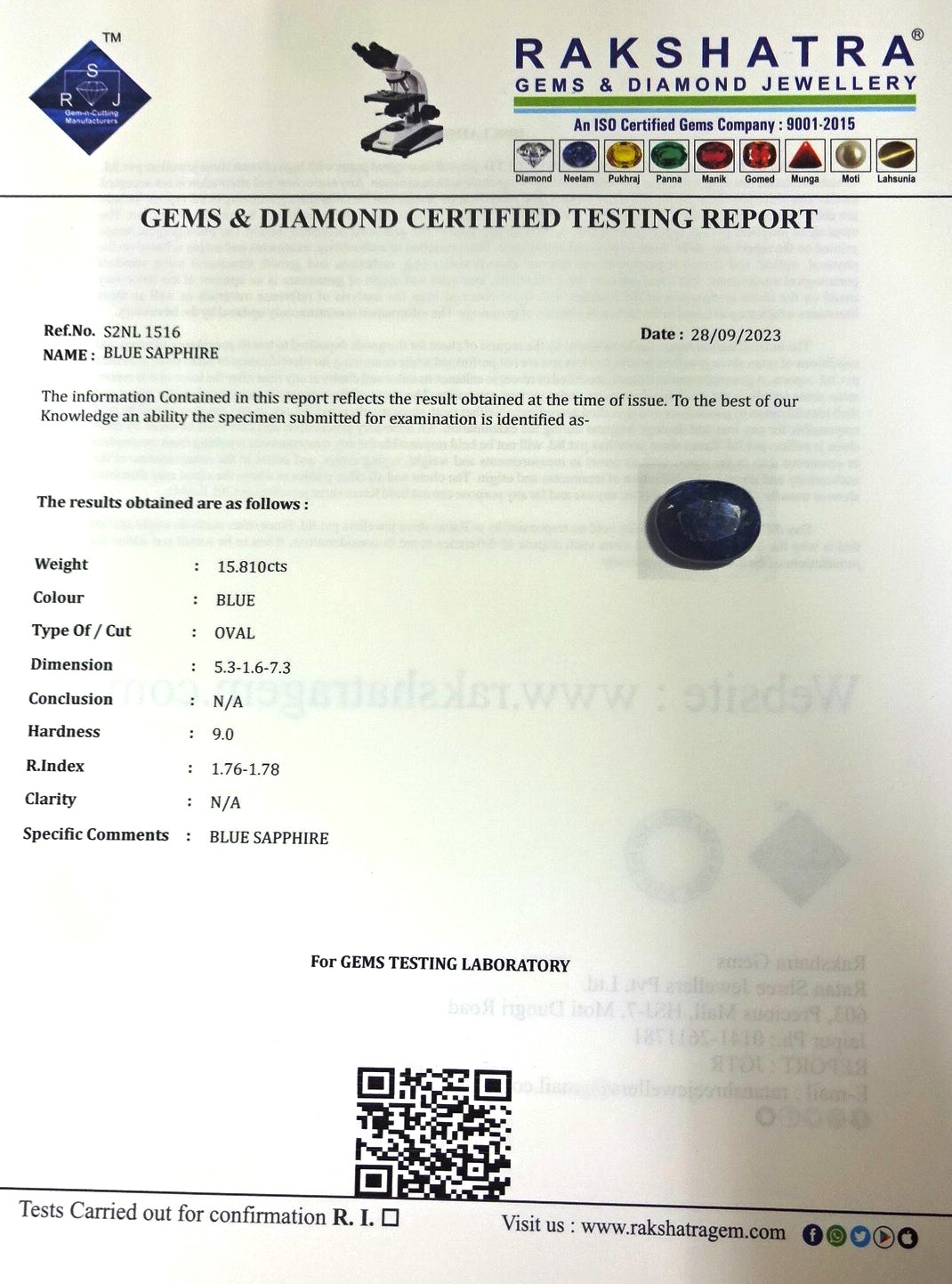 | SPECIFIC COMMENTS: | BLUE SAPPHIRE |