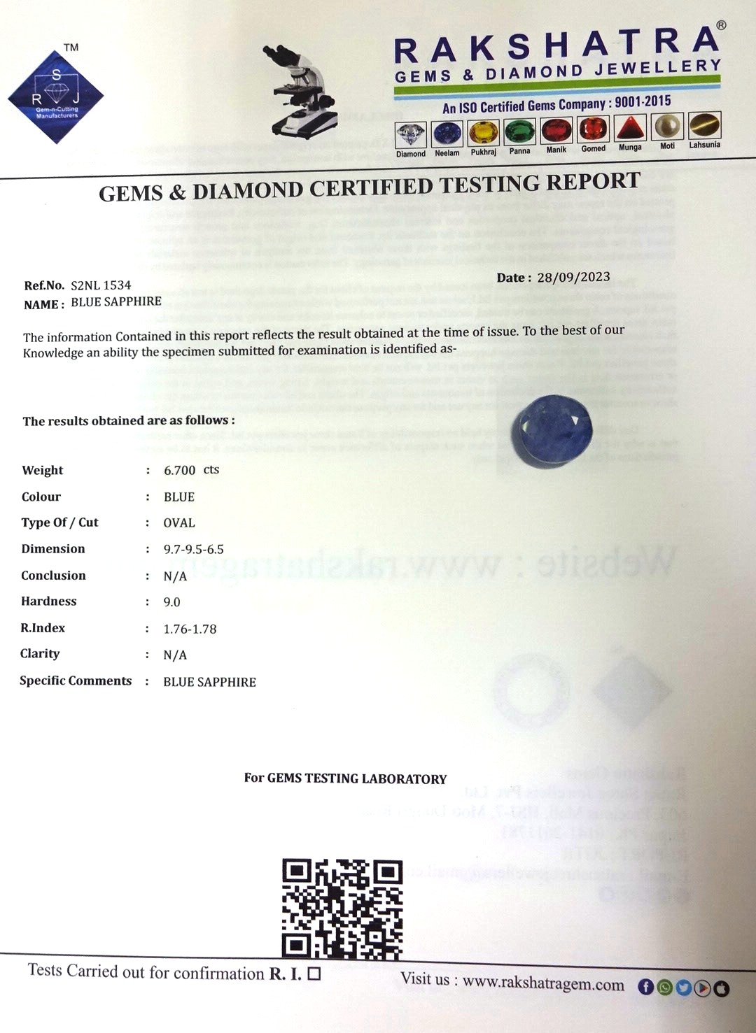 | SPECIFIC COMMENTS: | BLUE SAPPHIRE |