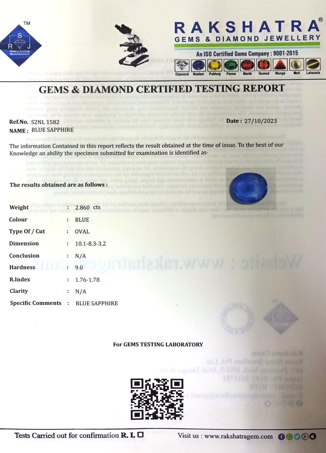 | SPECIFIC COMMENTS: | BLUE SAPPHIRE |