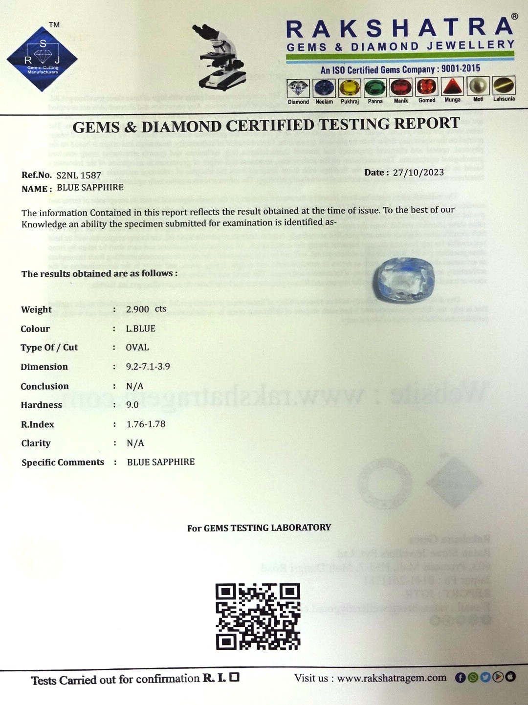 | SPECIFIC COMMENTS: | BLUE SAPPHIRE |