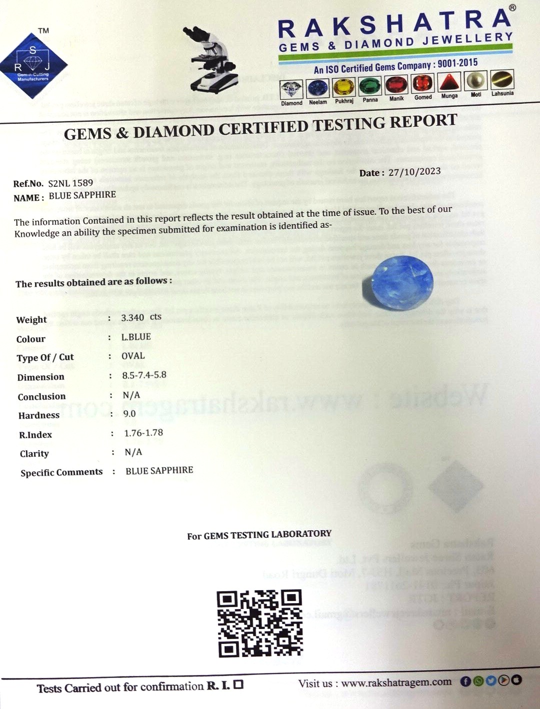 | SPECIFIC COMMENTS: | BLUE SAPPHIRE |