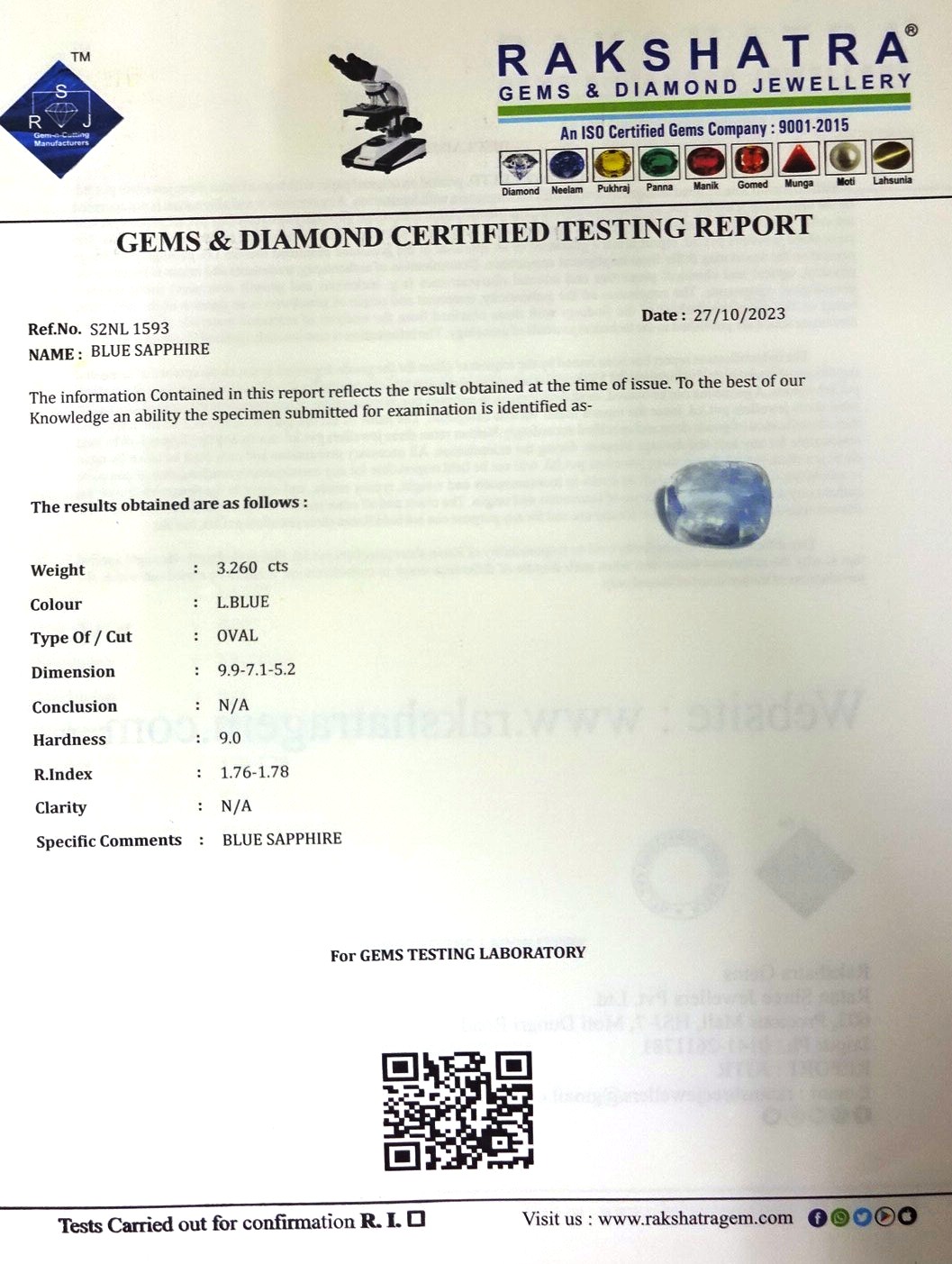 | SPECIFIC COMMENTS: | BLUE SAPPHIRE |