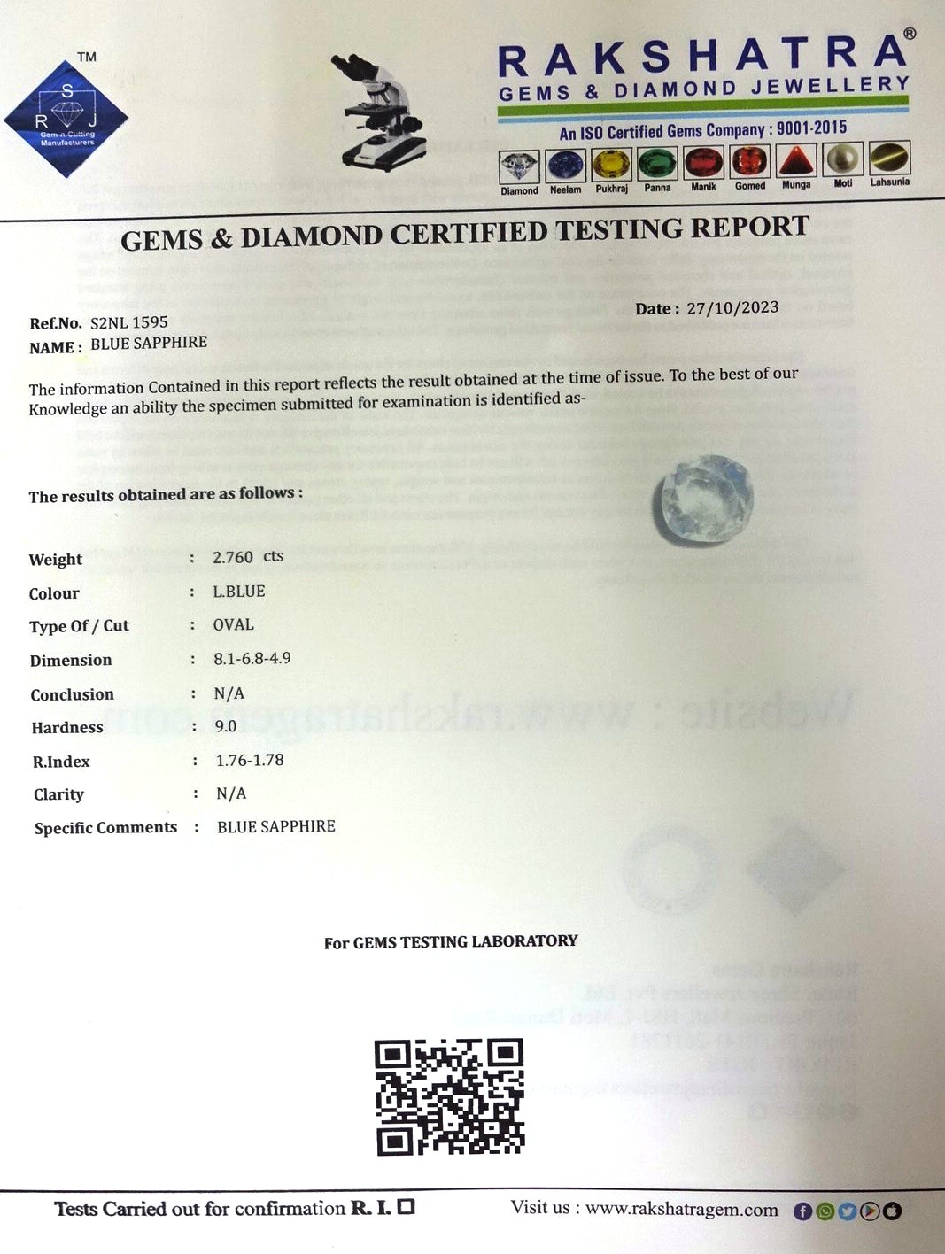 | SPECIFIC COMMENTS: | BLUE SAPPHIRE |