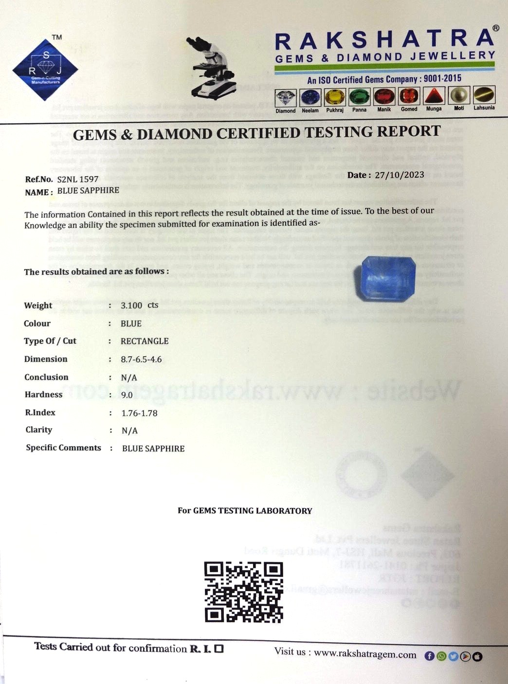 | SPECIFIC COMMENTS: | BLUE SAPPHIRE |