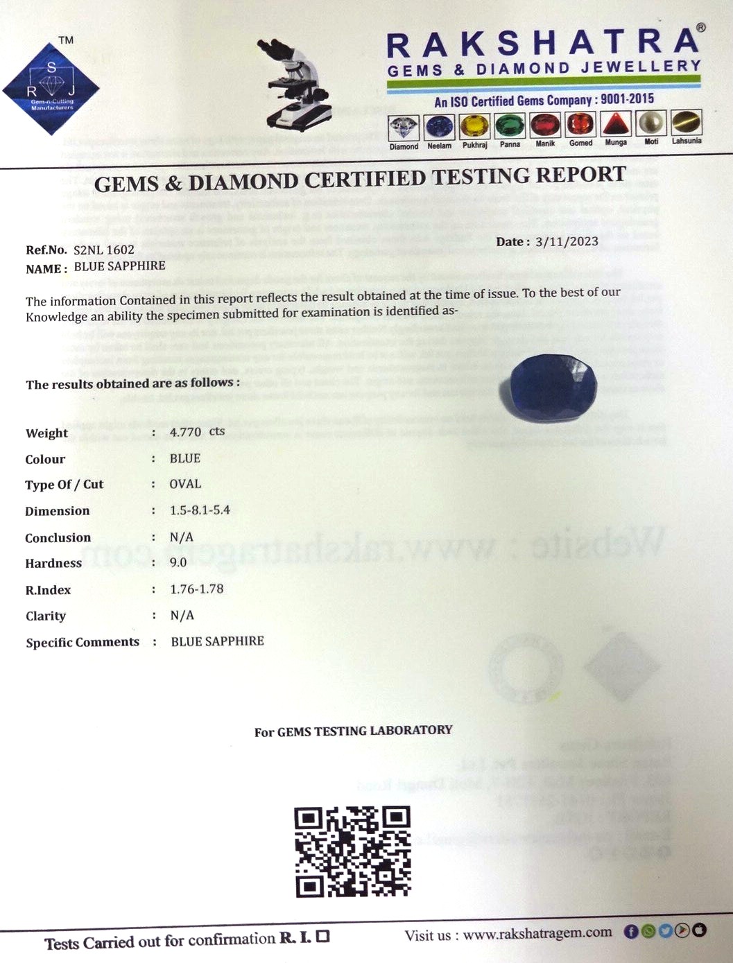 | SPECIFIC COMMENTS: | BLUE SAPPHIRE |