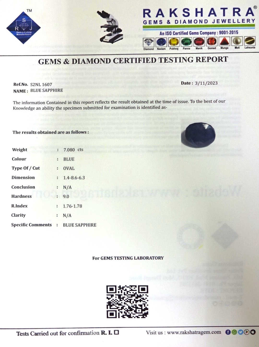 | SPECIFIC COMMENTS: | BLUE SAPPHIRE |