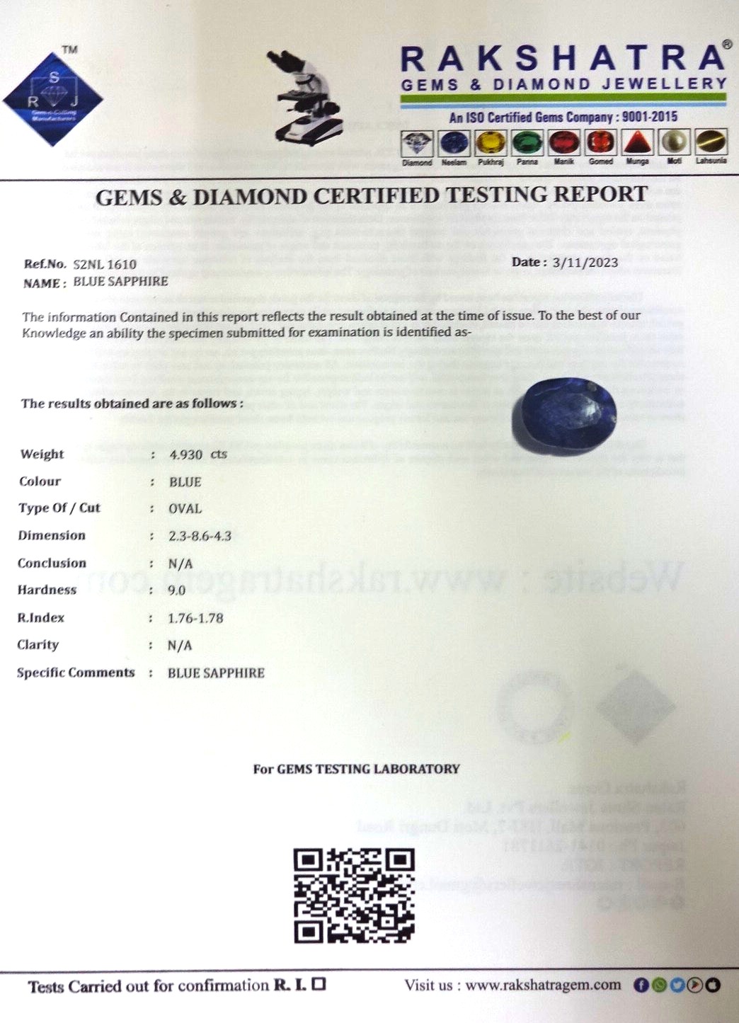 | SPECIFIC COMMENTS: | BLUE SAPPHIRE |