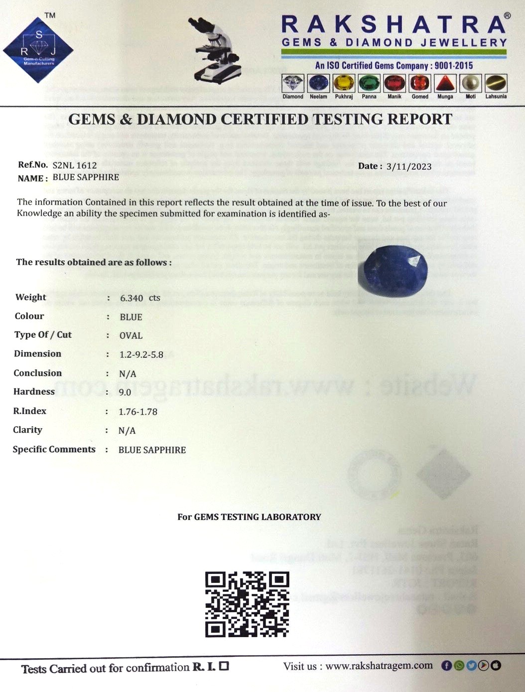 | WEIGHT: | 6.34 CTS |