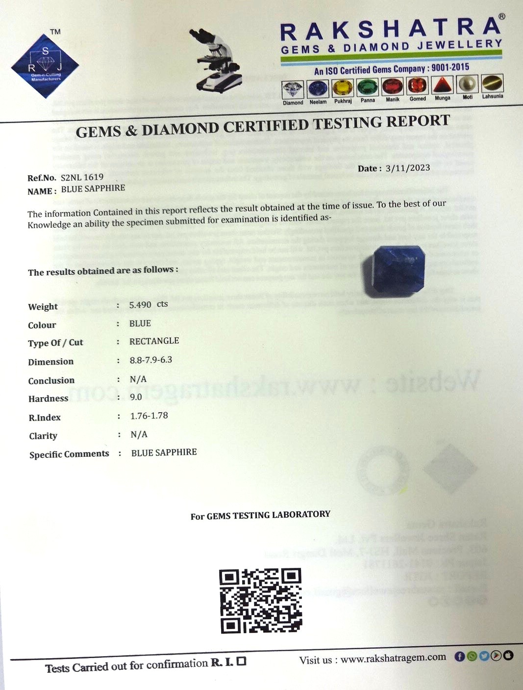 | SPECIFIC COMMENTS: | BLUE SAPPHIRE |