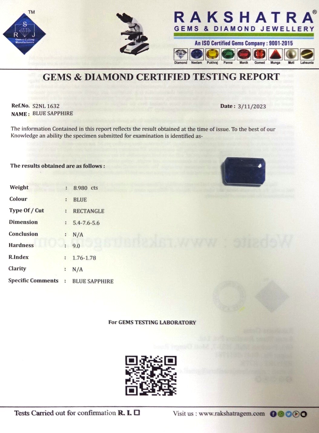 | SPECIFIC COMMENTS: | BLUE SAPPHIRE |