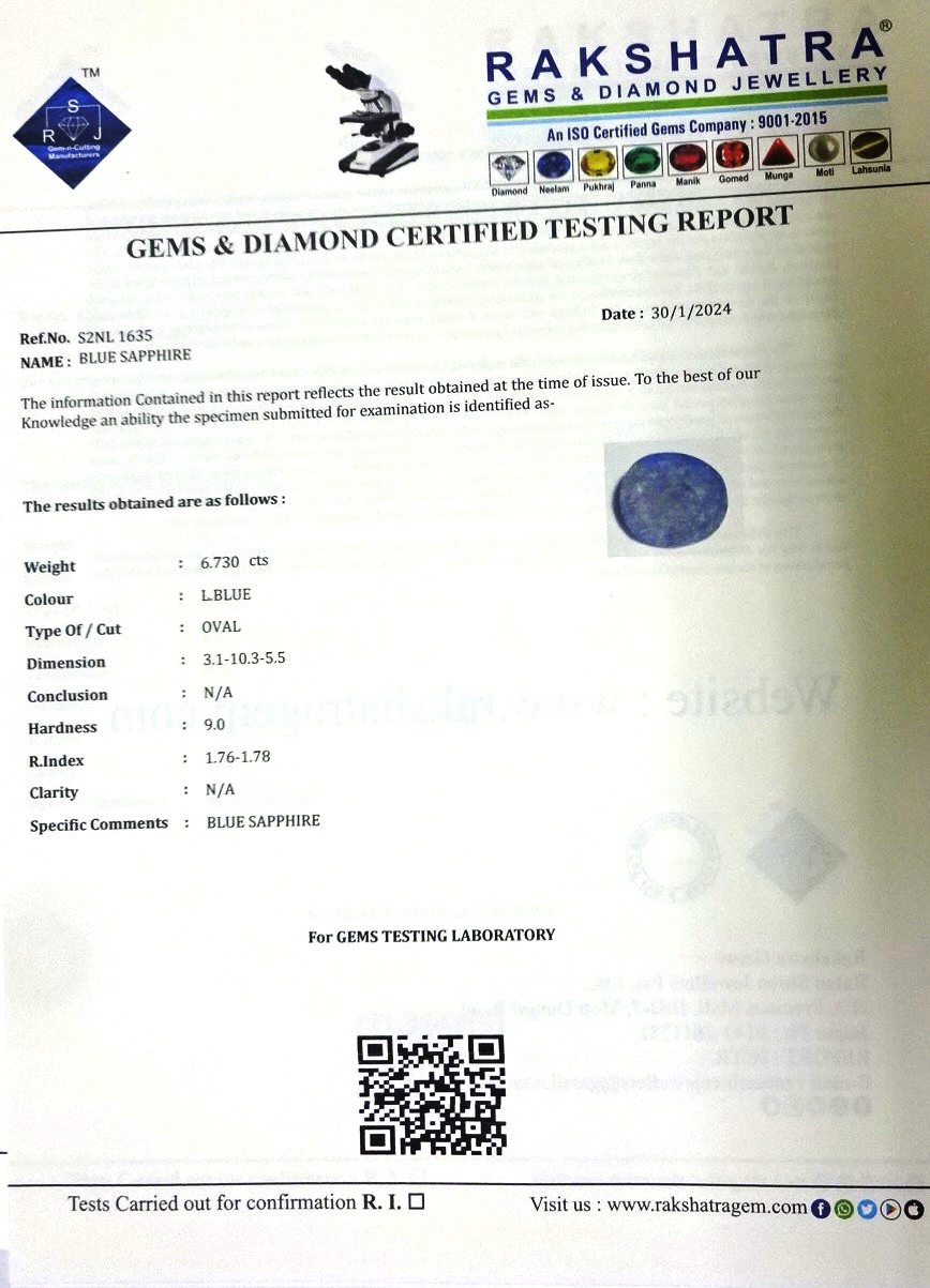 | SPECIFIC COMMENTS: | BLUE SAPPHIRE |