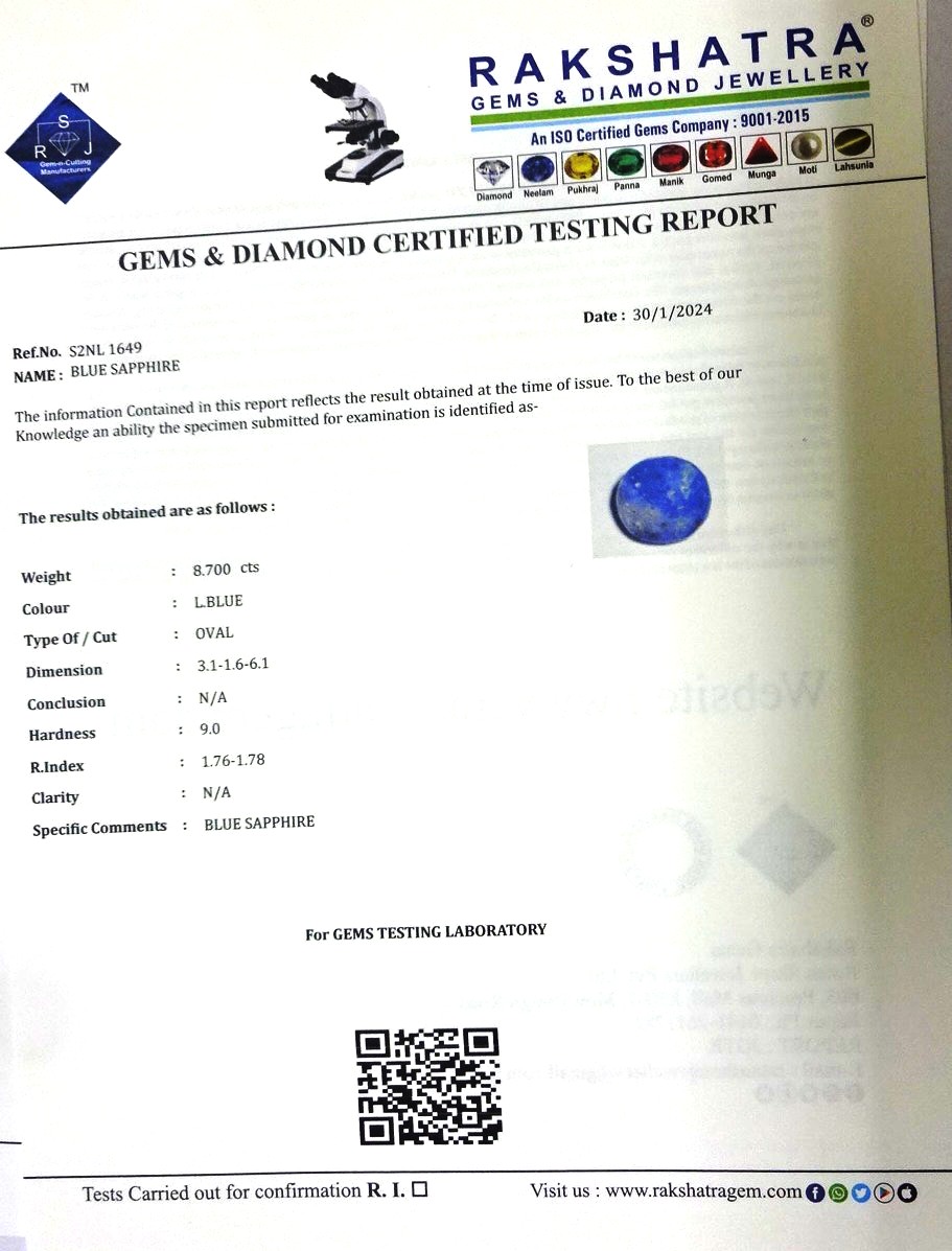 | SPECIFIC COMMENTS: | BLUE SAPPHIRE |