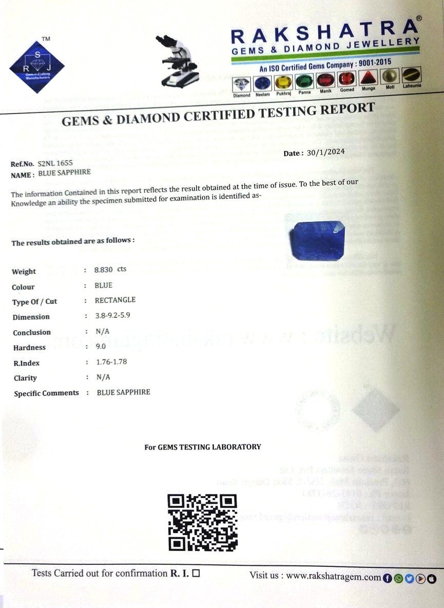 | SPECIFIC COMMENTS: | BLUE SAPPHIRE |