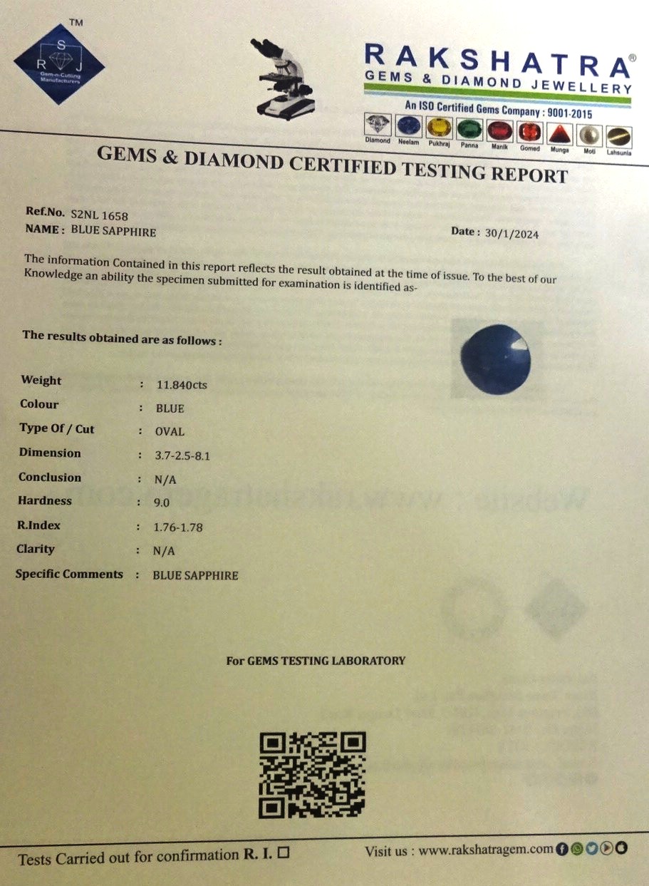 | SPECIFIC COMMENTS: | BLUE SAPPHIRE |