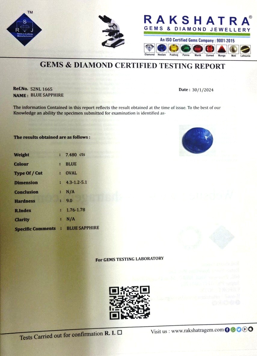 | SPECIFIC COMMENTS: | BLUE SAPPHIRE |