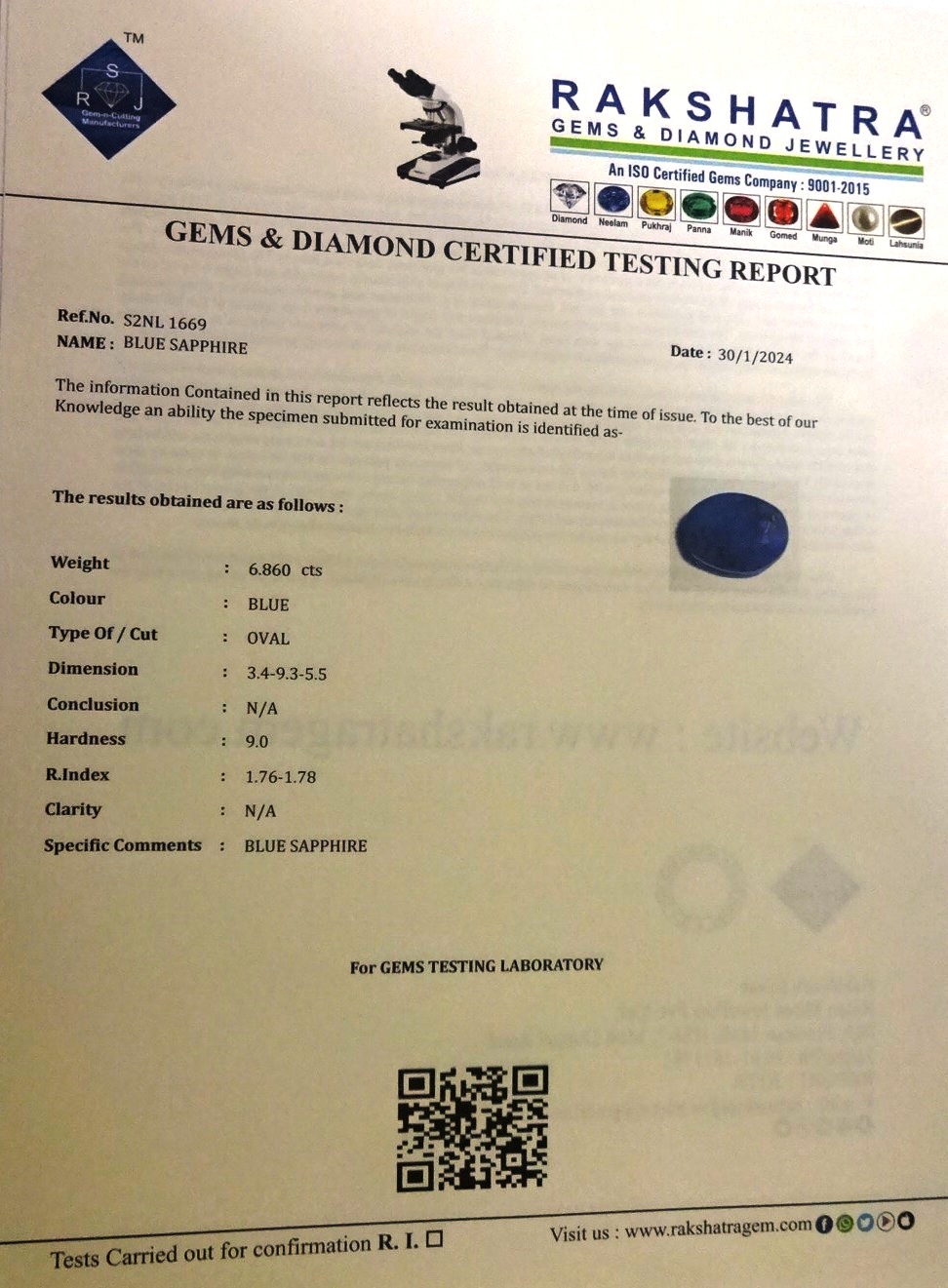 | SPECIFIC COMMENTS: | BLUE SAPPHIRE |