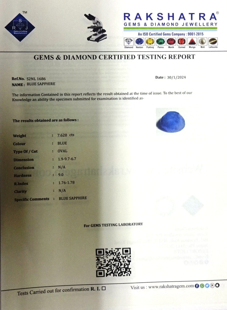 | SPECIFIC COMMENTS: | BLUE SAPPHIRE |