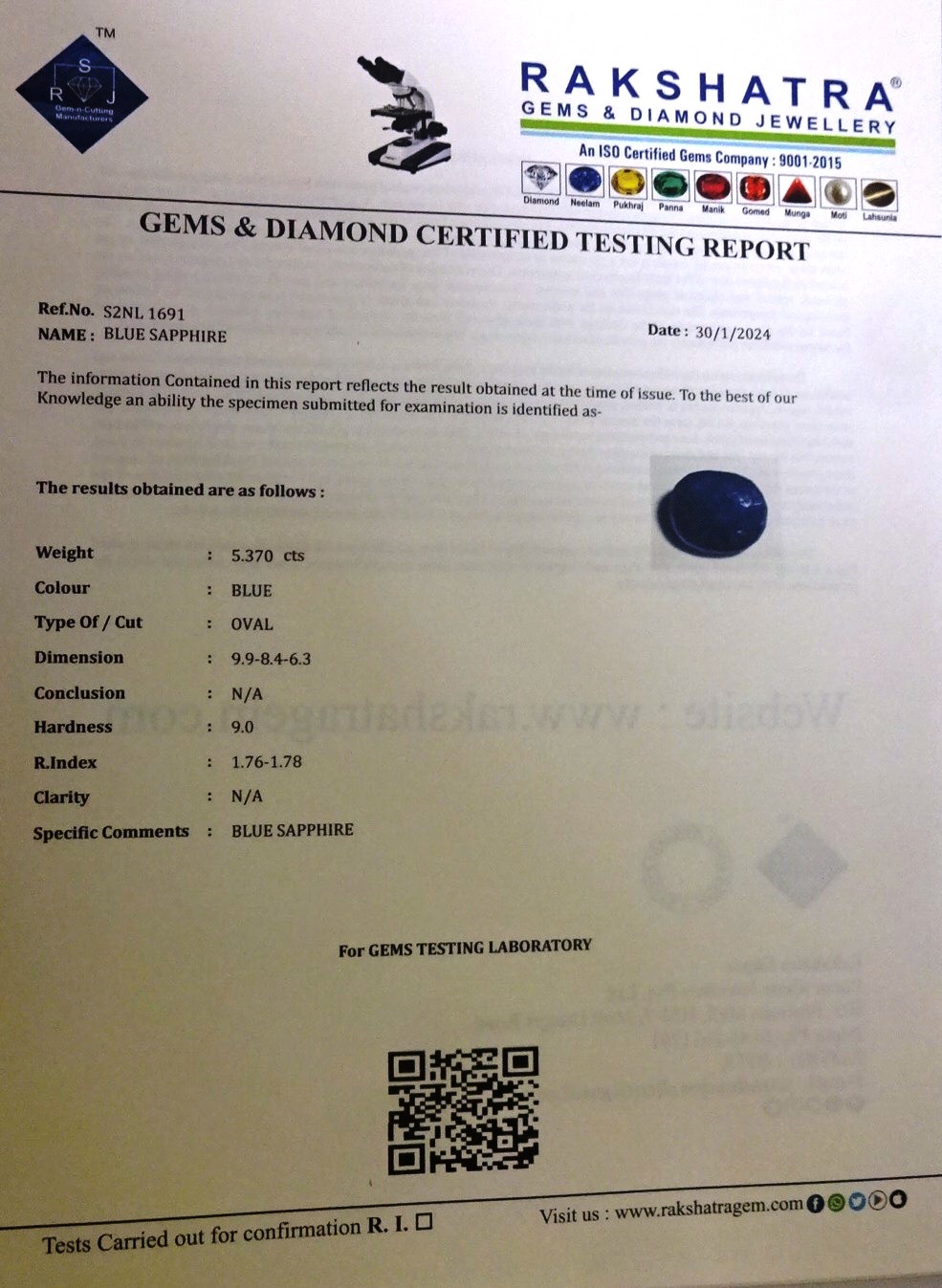 | SPECIFIC COMMENTS: | BLUE SAPPHIRE |