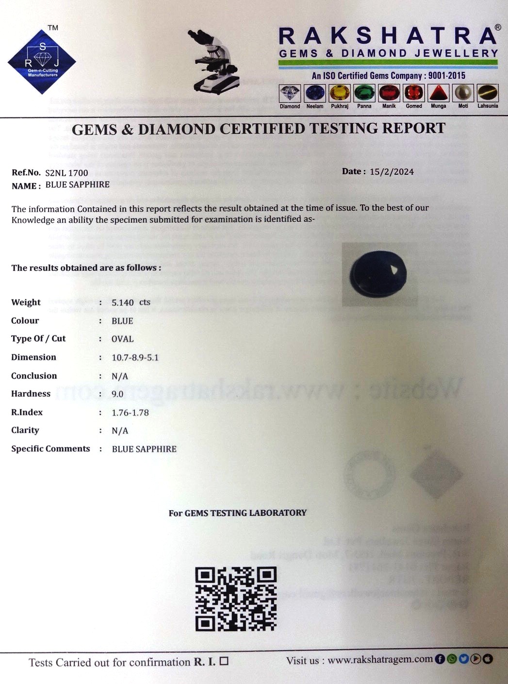 | SPECIFIC COMMENTS: | BLUE SAPPHIRE |