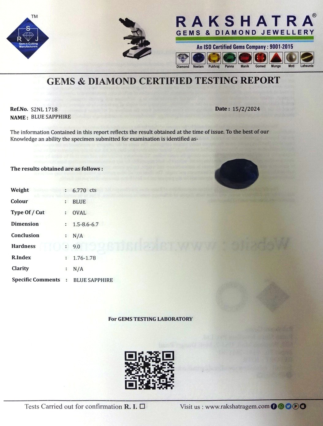 | SPECIFIC COMMENTS: | BLUE SAPPHIRE |