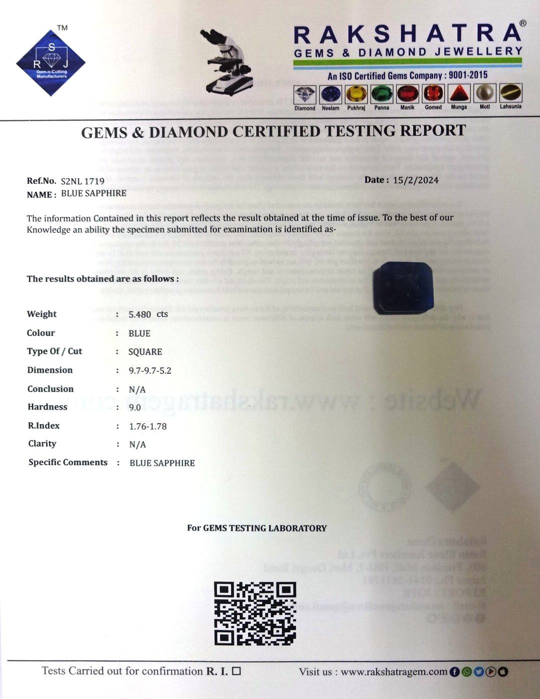 | SPECIFIC COMMENTS: | BLUE SAPPHIRE |