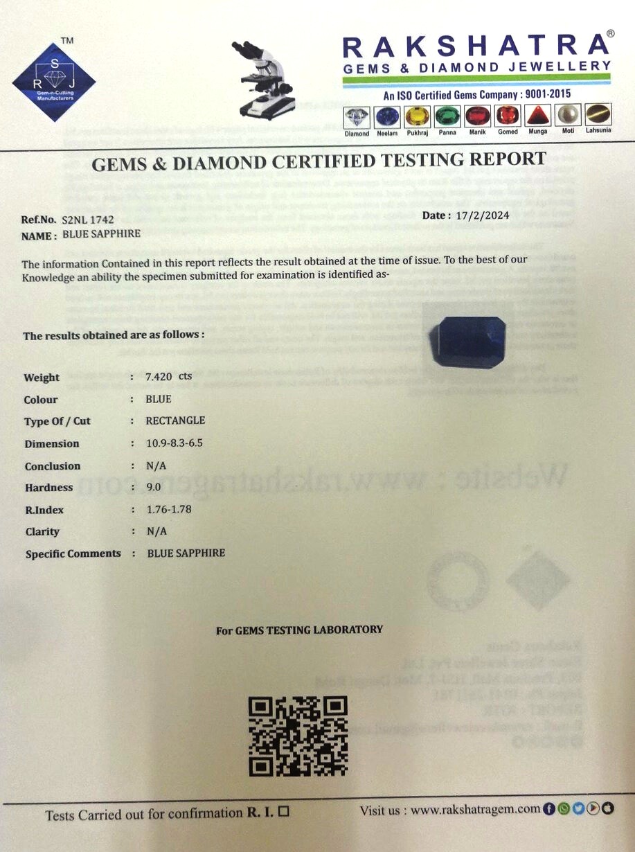 | SPECIFIC COMMENTS: | BLUE SAPPHIRE |