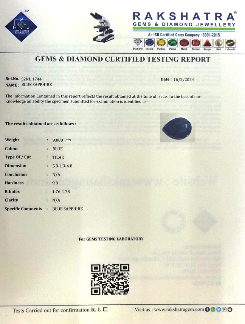 | SPECIFIC COMMENTS: | BLUE SAPPHIRE |