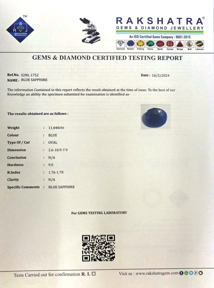 | SPECIFIC COMMENTS: | BLUE SAPPHIRE |
