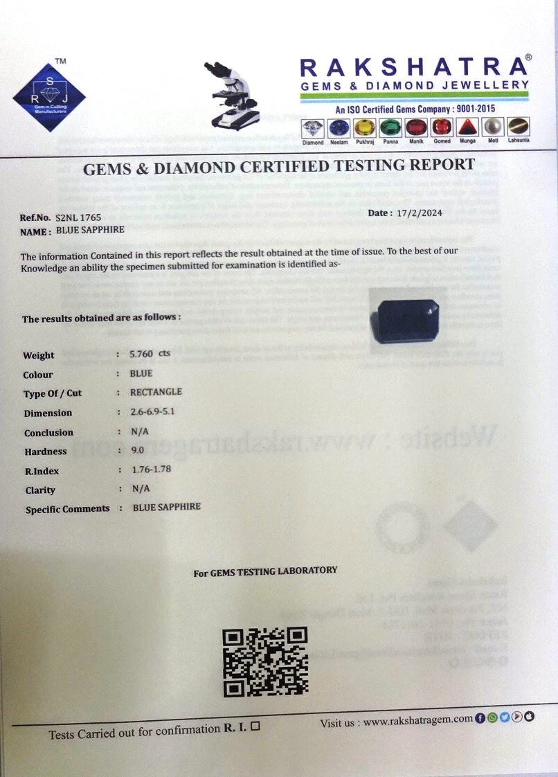 | SPECIFIC COMMENTS: | BLUE SAPPHIRE |