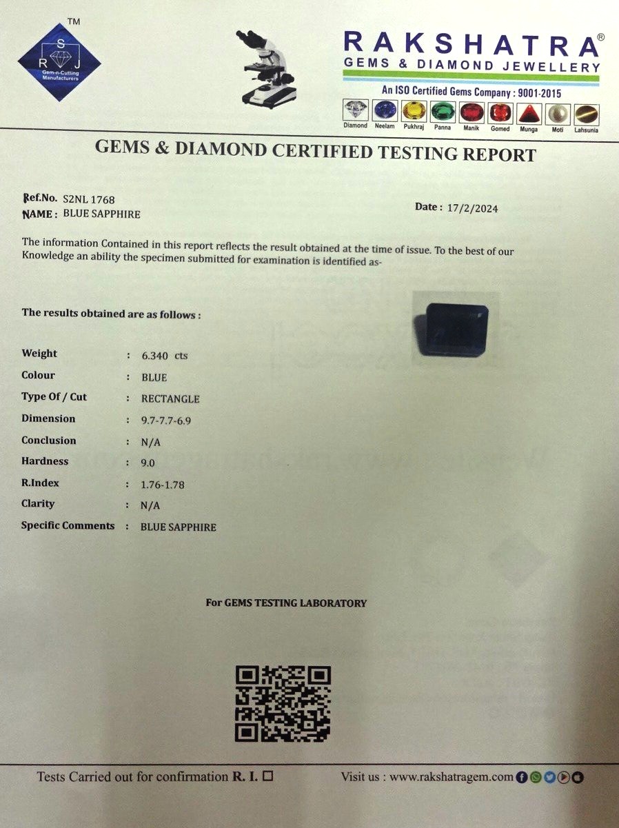 | SPECIFIC COMMENTS: | BLUE SAPPHIRE |