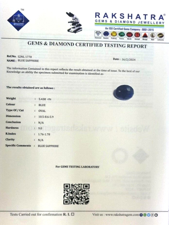 | SPECIFIC COMMENTS: | BLUE SAPPHIRE |
