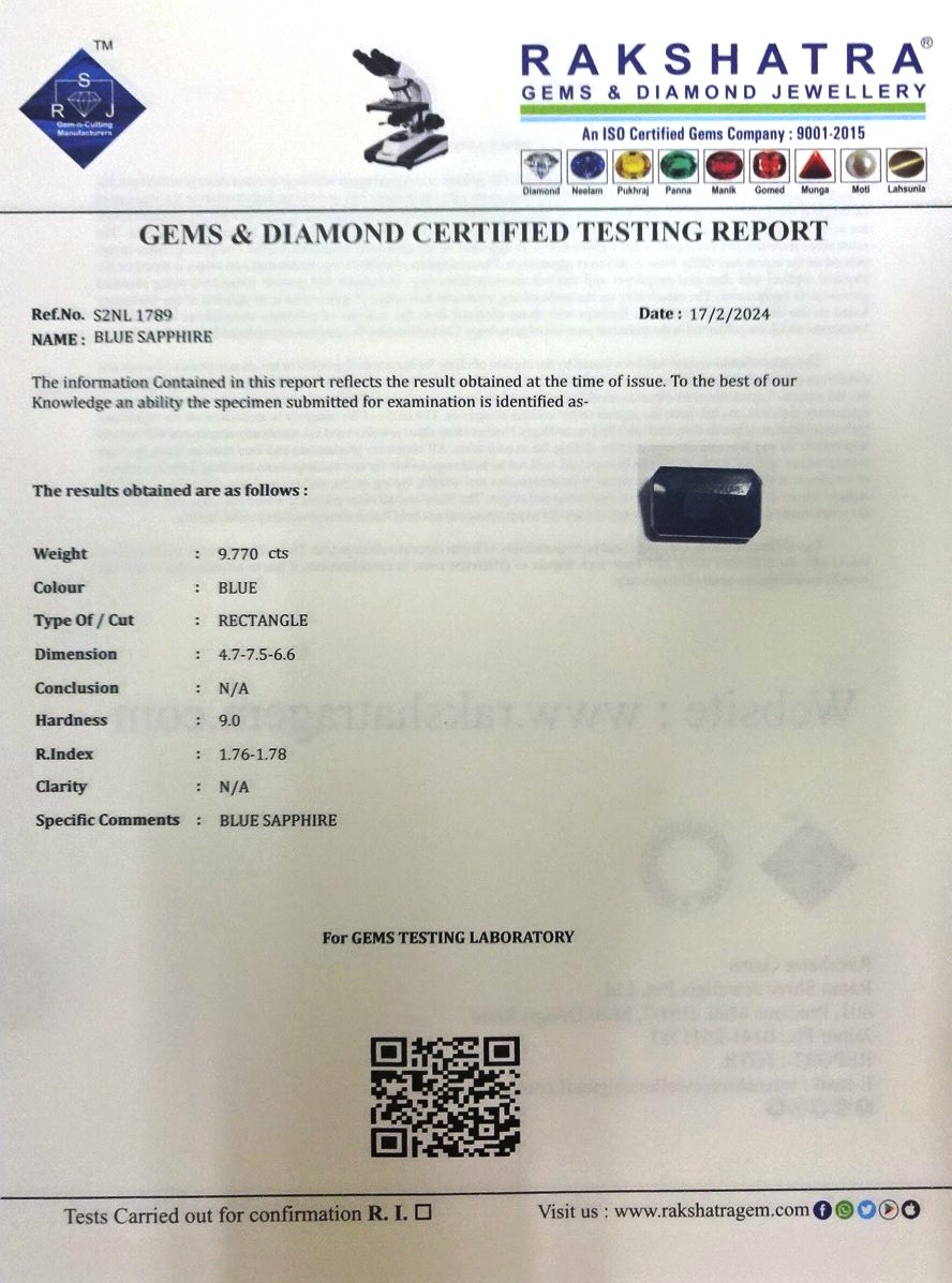 | SPECIFIC COMMENTS: | BLUE SAPPHIRE |