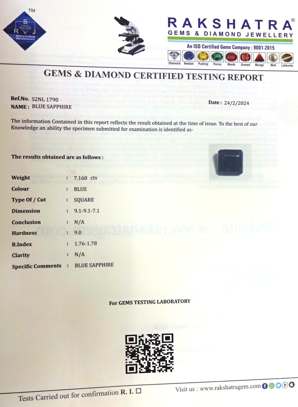 | SPECIFIC COMMENTS: | BLUE SAPPHIRE |