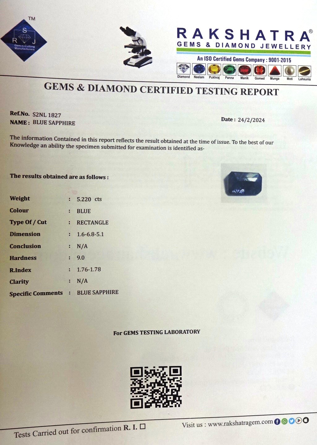| SPECIFIC COMMENTS: | BLUE SAPPHIRE |
