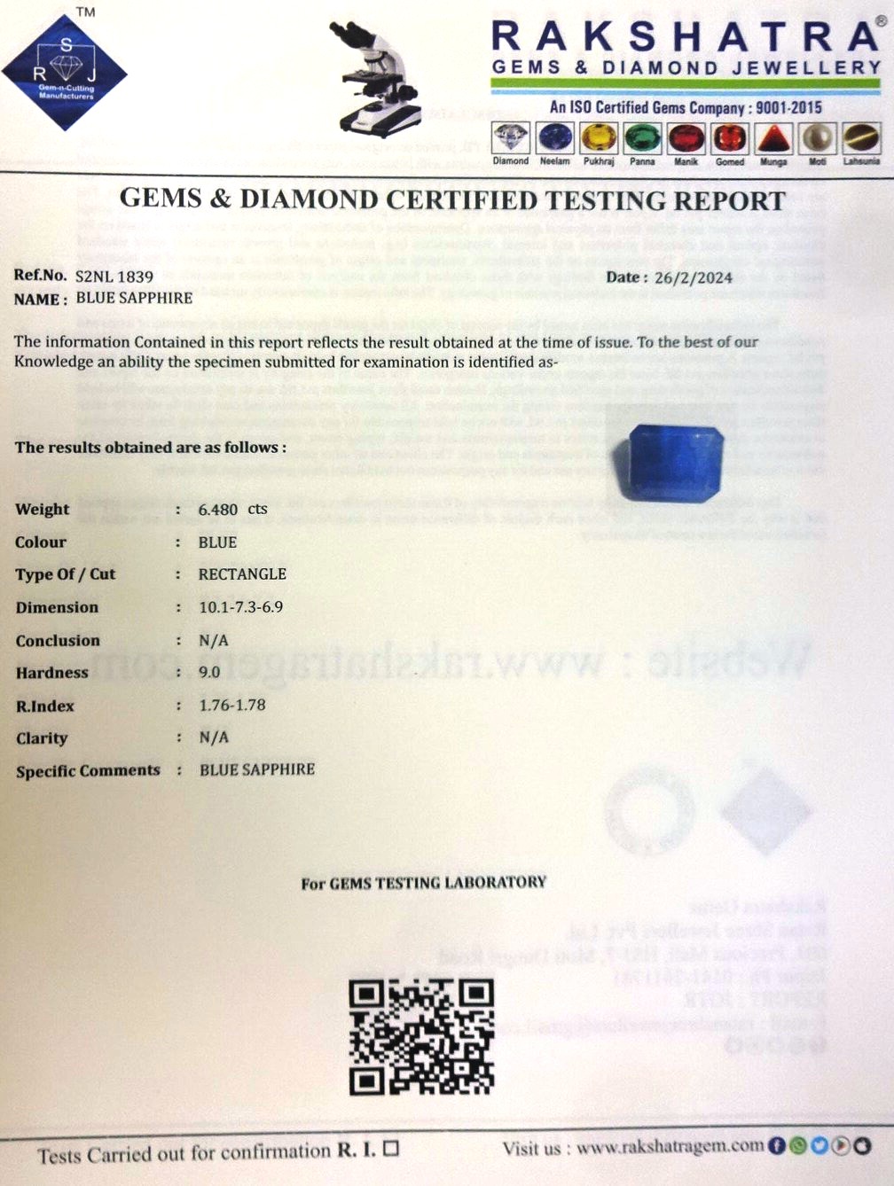 | SPECIFIC COMMENTS: | BLUE SAPPHIRE |