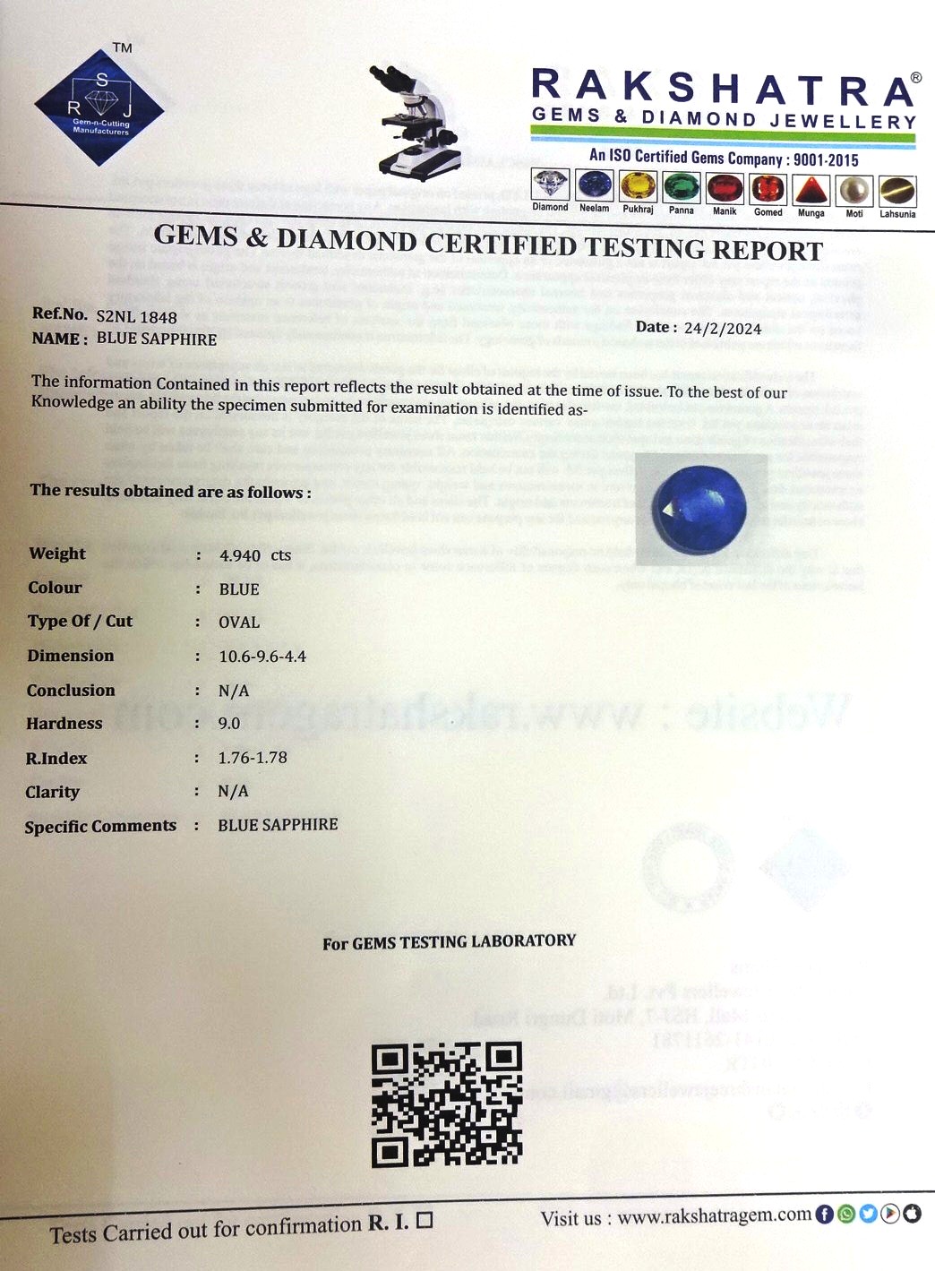 | SPECIFIC COMMENTS: | BLUE SAPPHIRE |