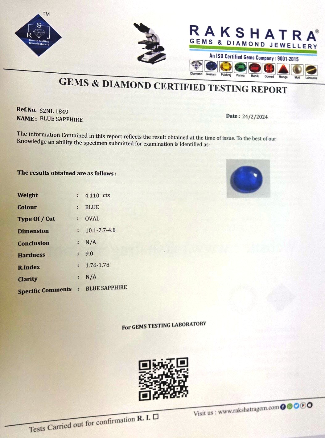 | SPECIFIC COMMENTS: | BLUE SAPPHIRE |