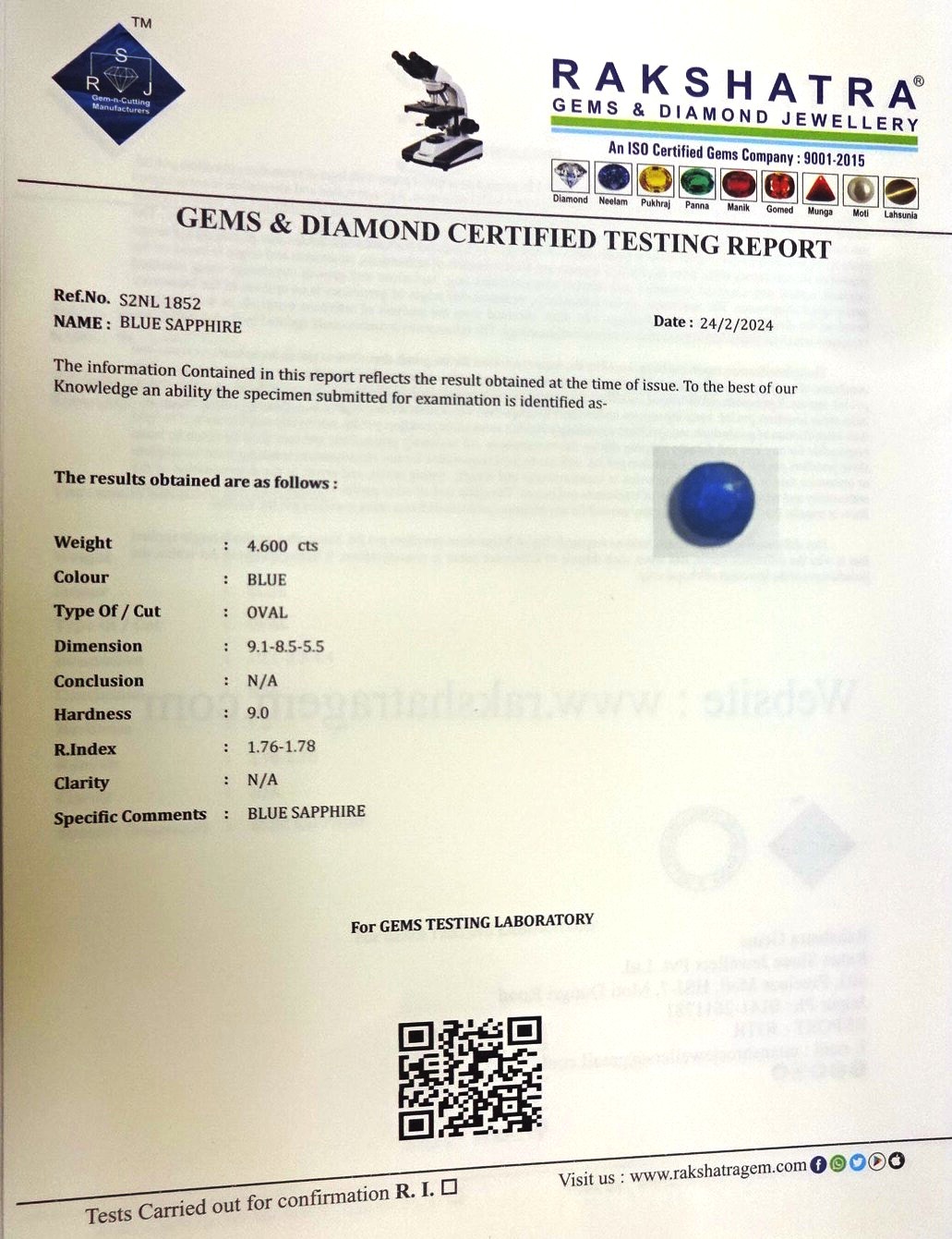 | SPECIFIC COMMENTS: | BLUE SAPPHIRE |