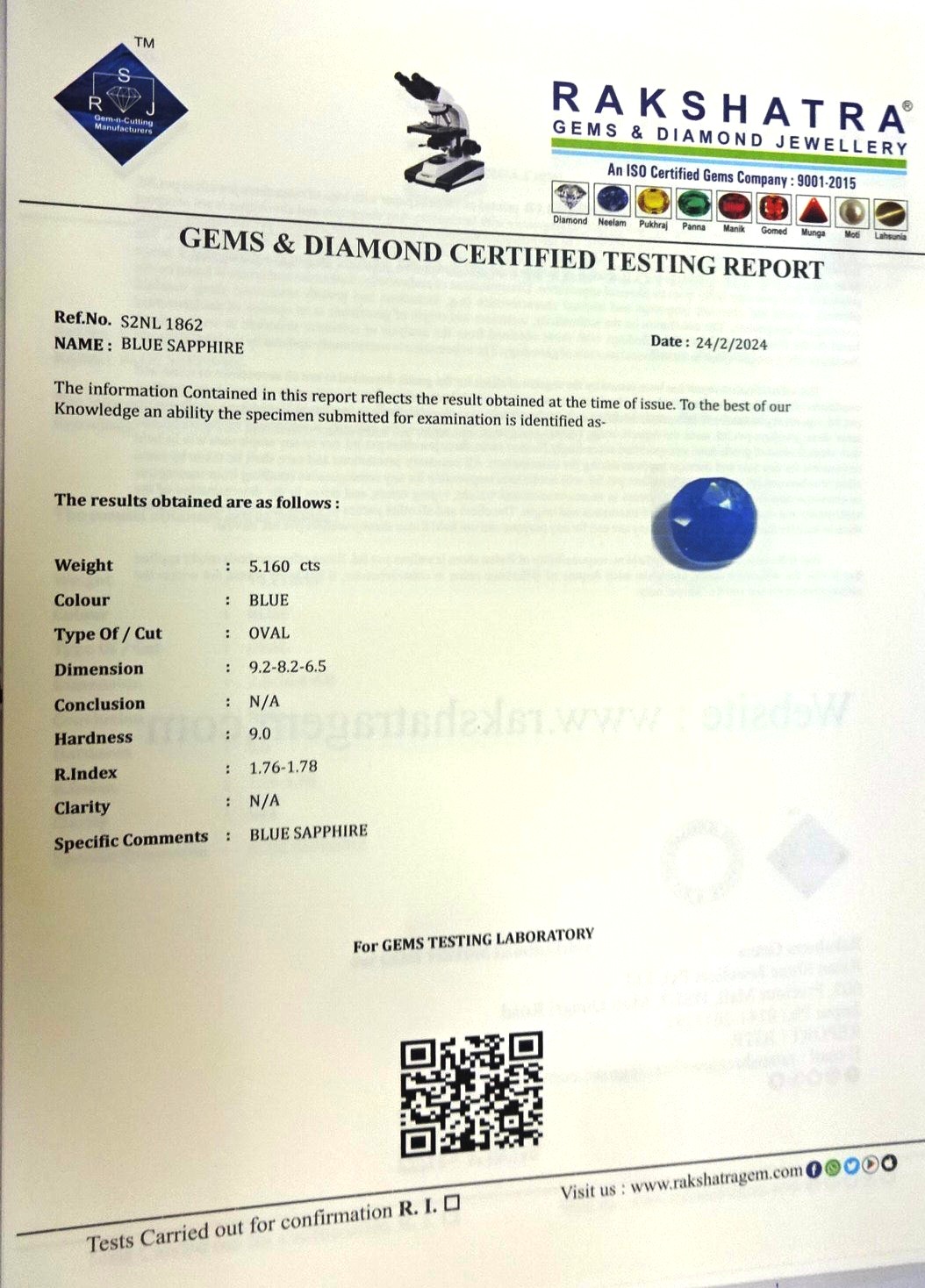 | SPECIFIC COMMENTS: | BLUE SAPPHIRE |