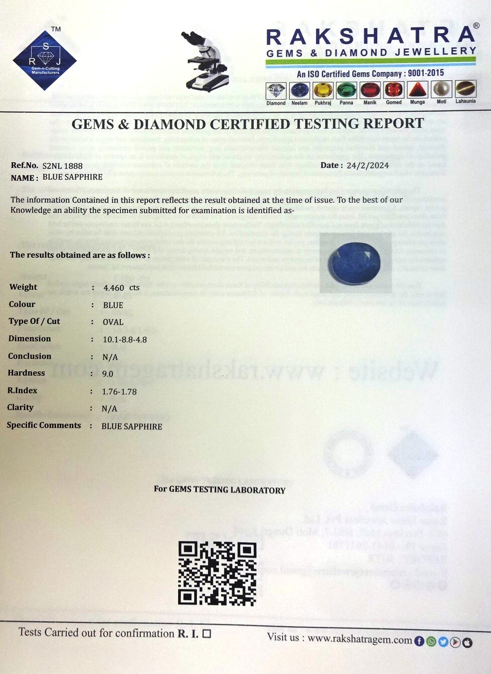 | SPECIFIC COMMENTS: | BLUE SAPPHIRE |