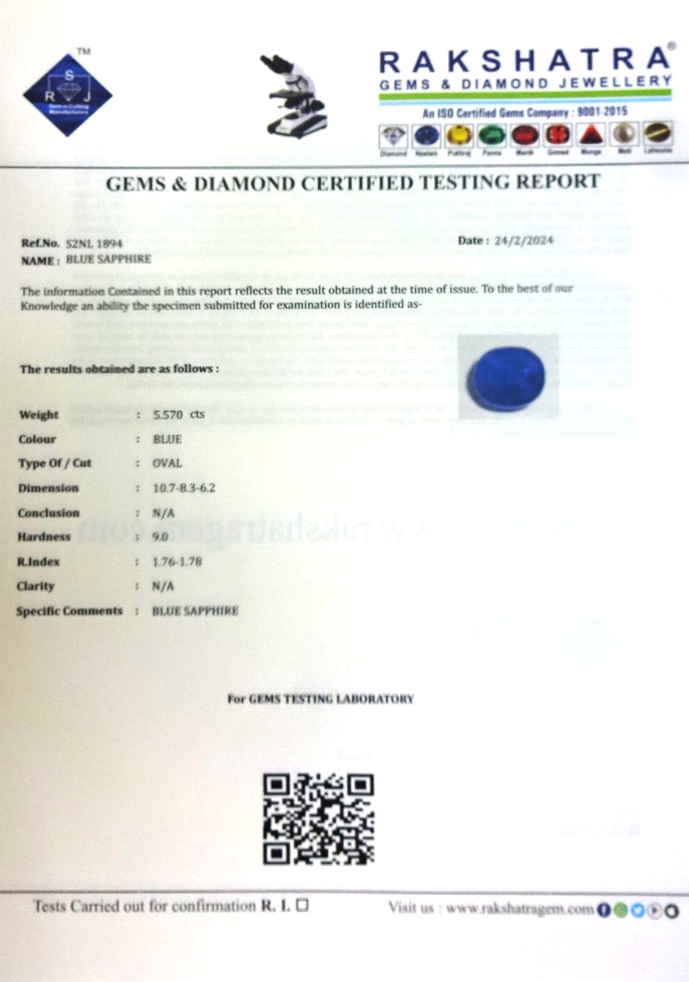 | SPECIFIC COMMENTS: | BLUE SAPPHIRE |