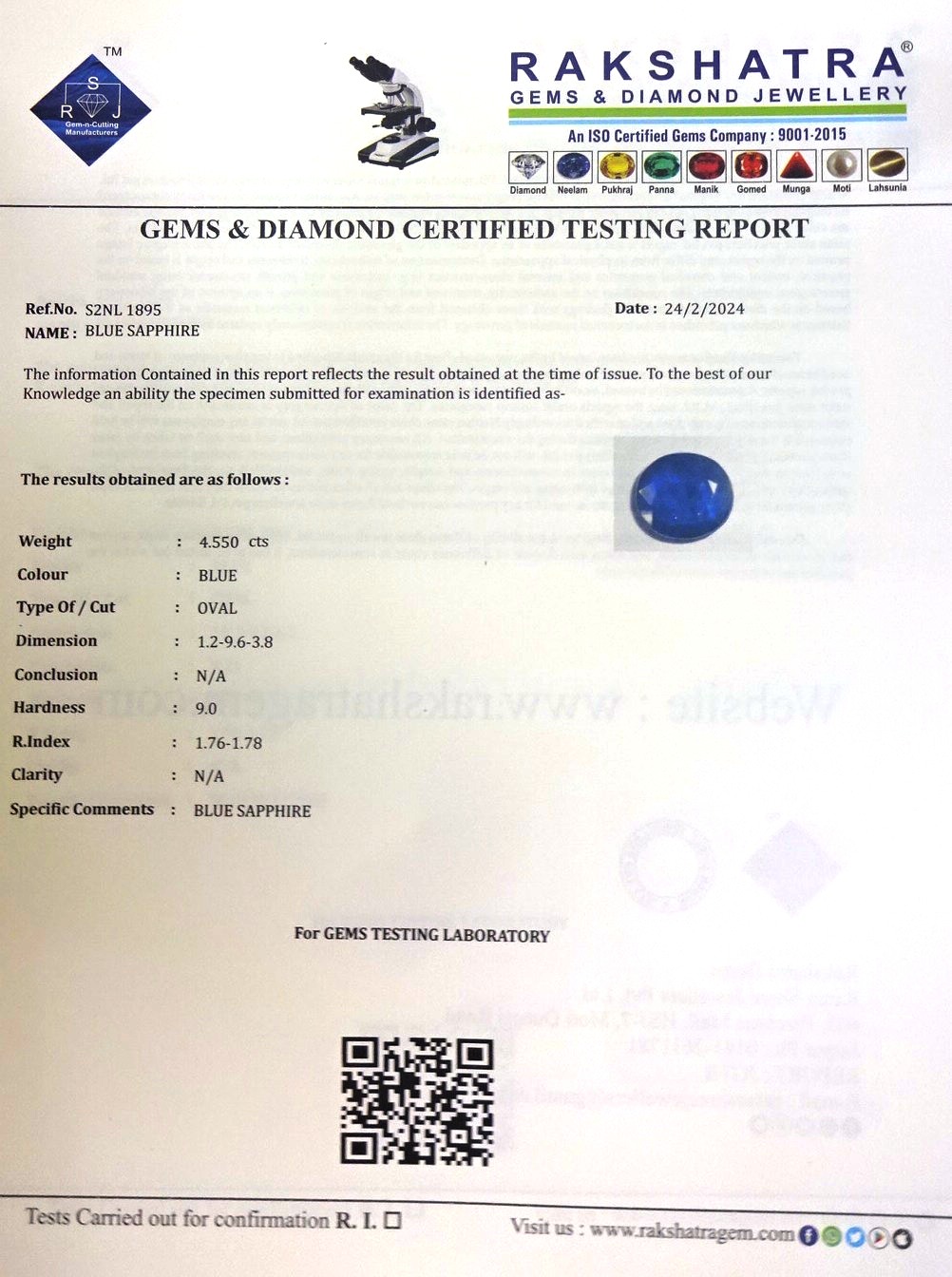| SPECIFIC COMMENTS: | BLUE SAPPHIRE |