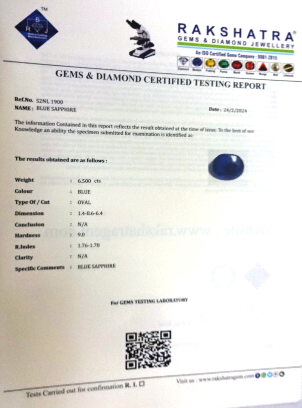 | SPECIFIC COMMENTS: | BLUE SAPPHIRE |