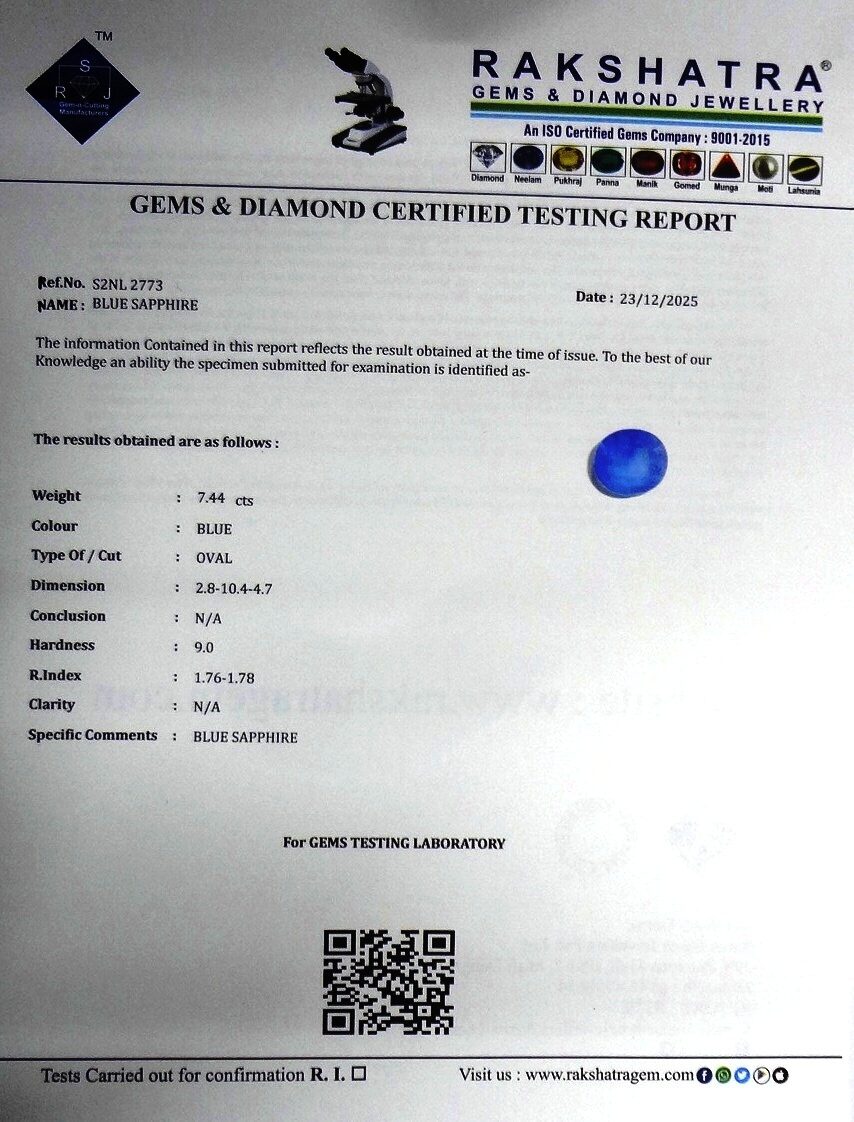 | SPECIFIC COMMENTS: | BLUE SAPPHIRE |